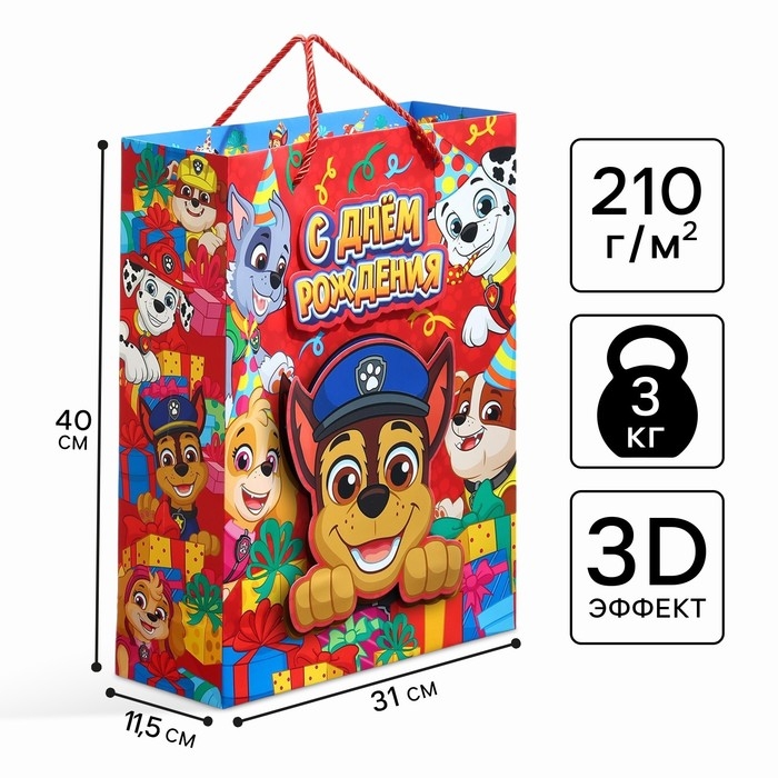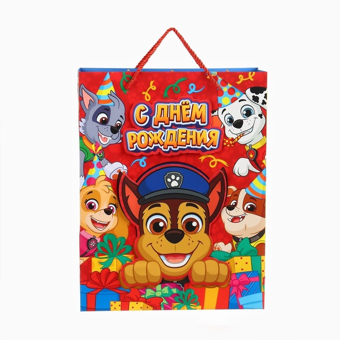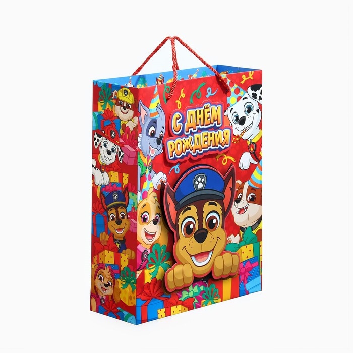 Пакет подарочный 3Д "С Днём Рождения!" 40х31х11.5 см, Щенячий патруль