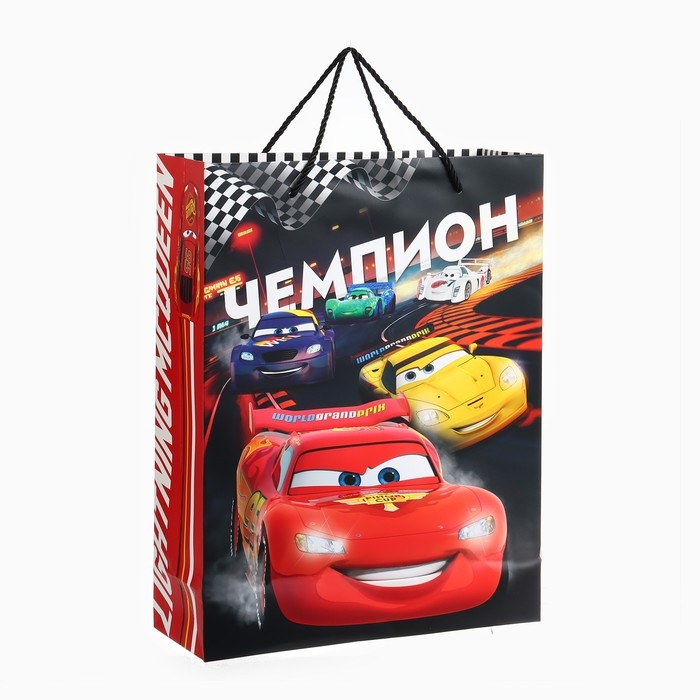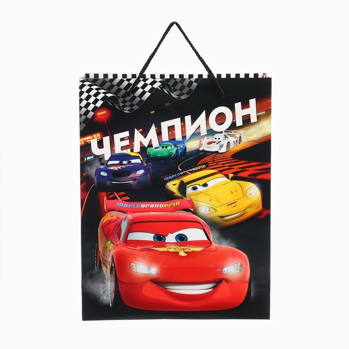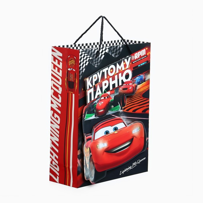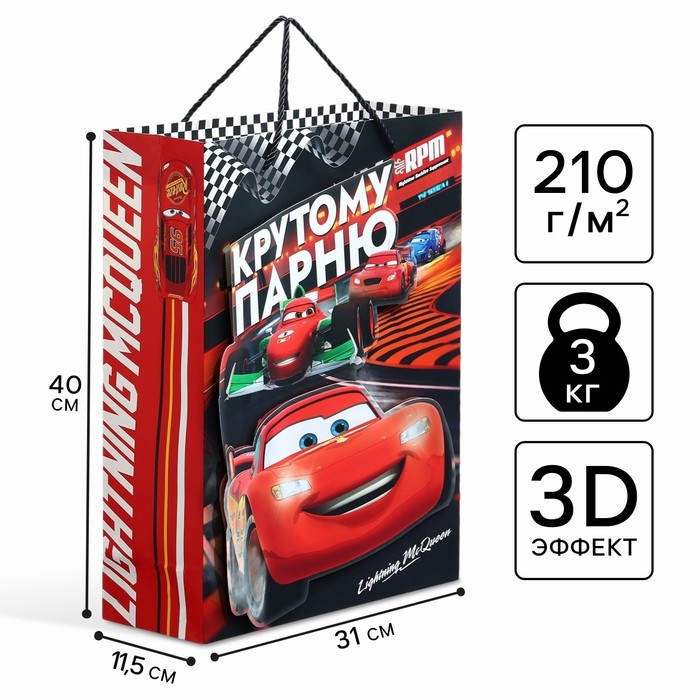 Пакет подарочный 3Д "Крутому парню" 40х31х11.5 см, Тачки