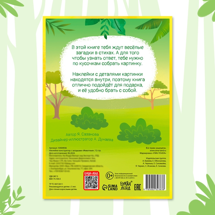 Наклейки конструктор с загадками «Животные», 12 стр., более 45 наклеек, 3+