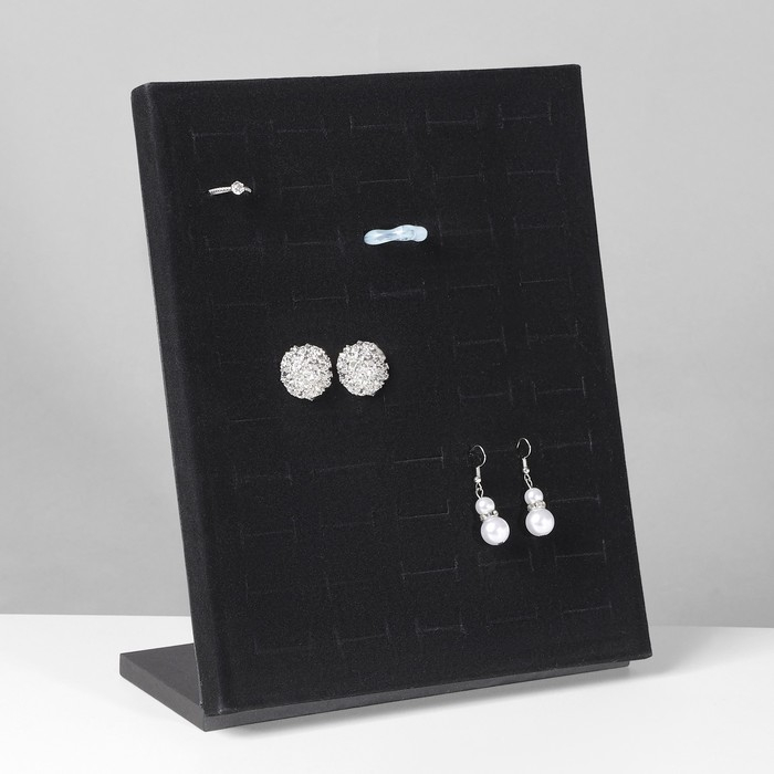 Подставка под кольца 50 мест, флок, цвет чёрный 20×9,7×24 см