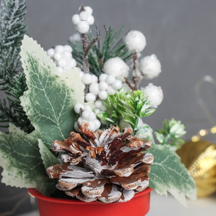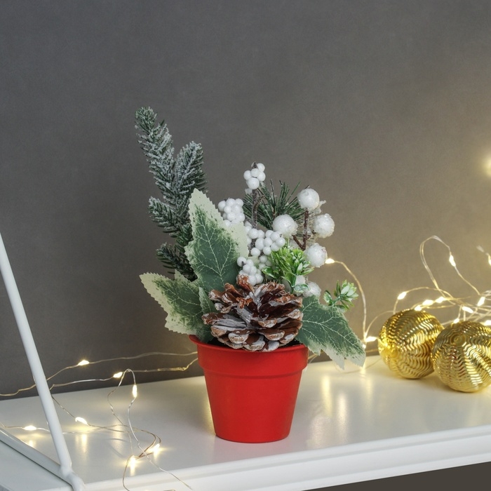 Декор "Яркий праздник, в горшочке" зелень шишка, 20х7 см