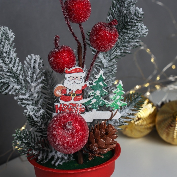 Декор "Яркий праздник, в горшочке" хвоя яблоки, 20х7 см