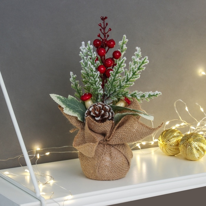 Декор "Яркий праздник, в мешочке" грибочки ягодки, 21х8 см