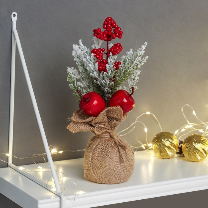Декор "Яркий праздник, в мешочке" веточки ягодки, 23х10 см
