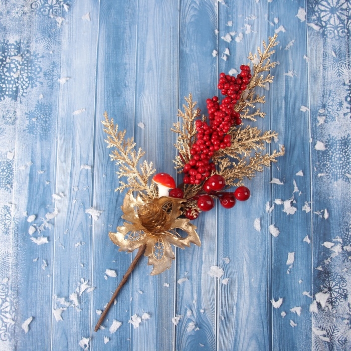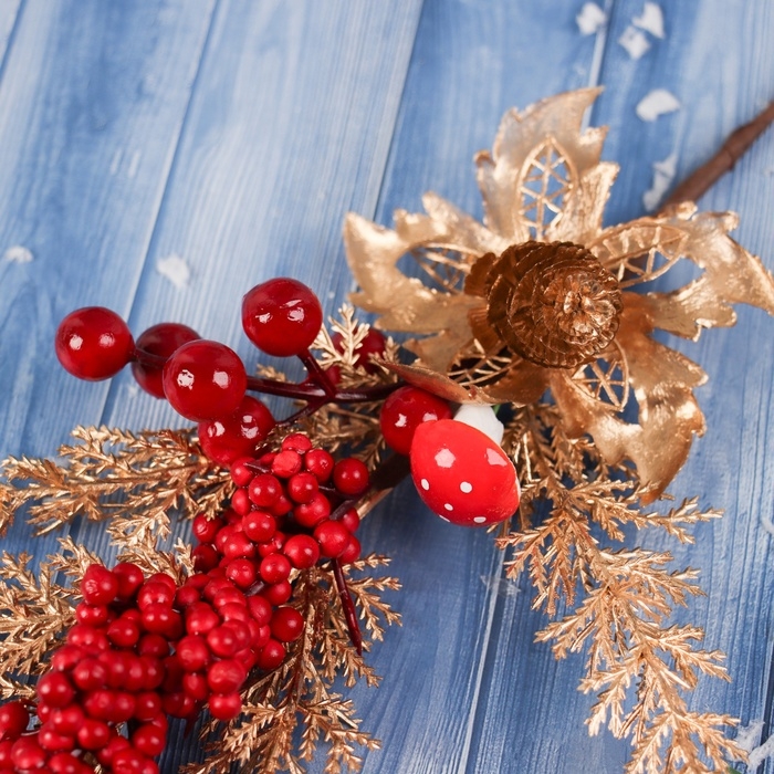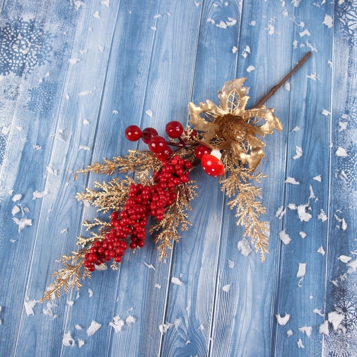 Декор "Новогодняя грация" ягодки, 30х10 см, красно-золотой