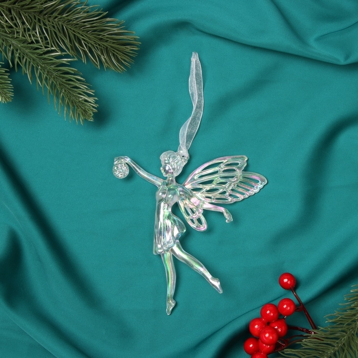 Украшение ёлочное "Фея с шариком" 12х11,5 см, белый перелив