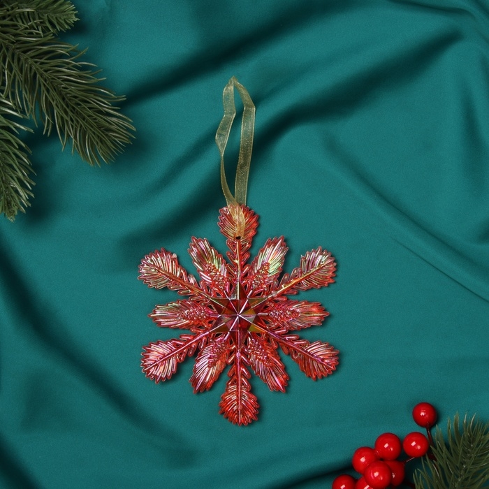 Украшение ёлочное "Снежинка ажурная" 11х11 см, красный перелив