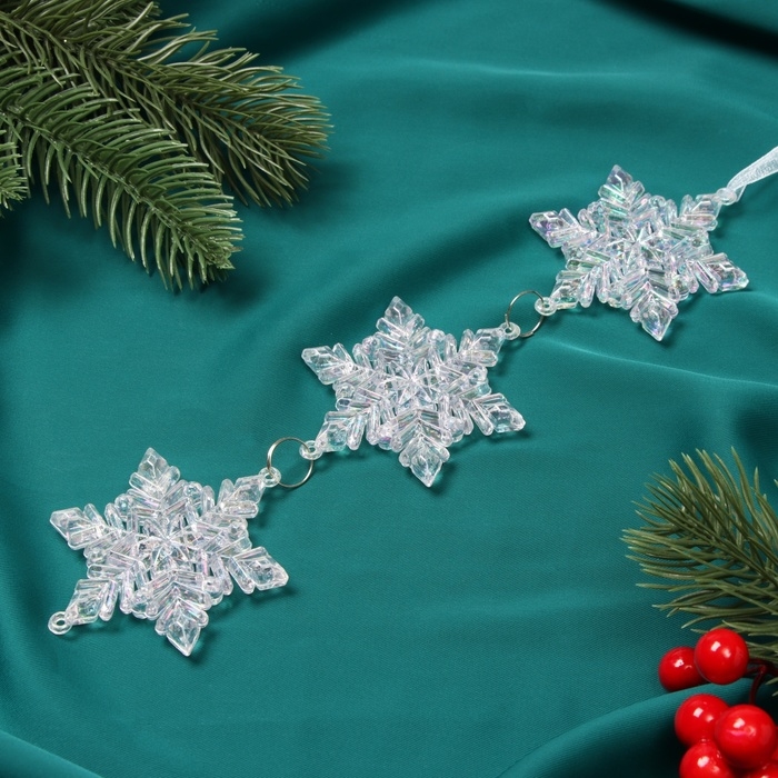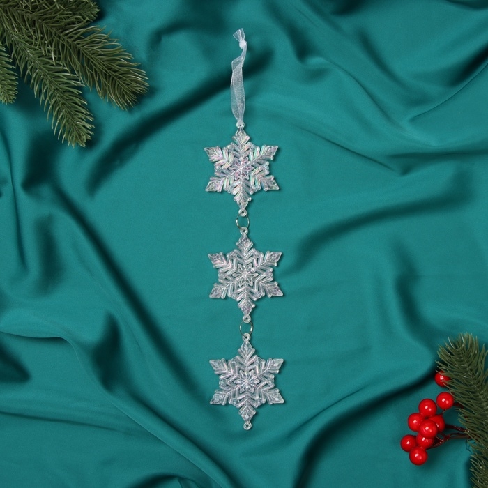 Украшение ёлочное "Снежинка подвесная" 23х5,5 см, прозрачный перелив