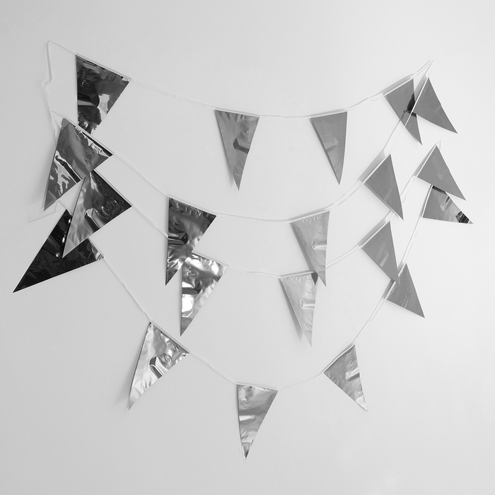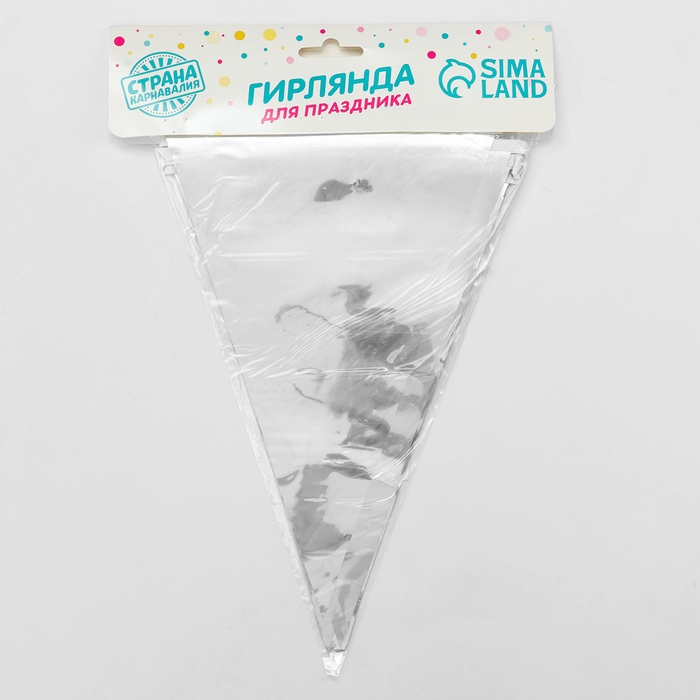 Яркая серебристая гирлянда из 20 треугольных флажков станет великолепным украшением для любого праздника! Длина гирлянды составляет 10 метров, что позволяет эффектно оформить любое пространство.