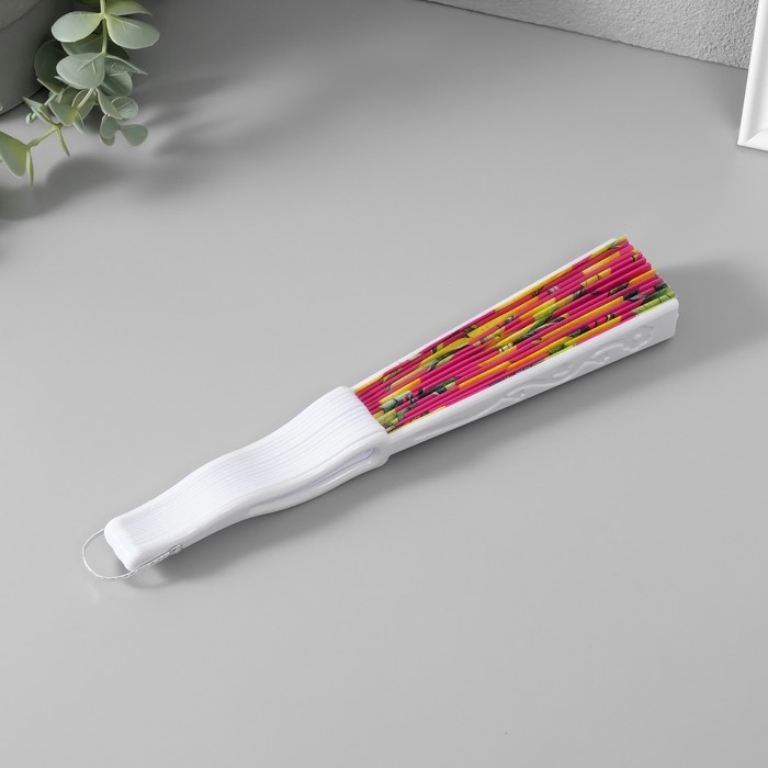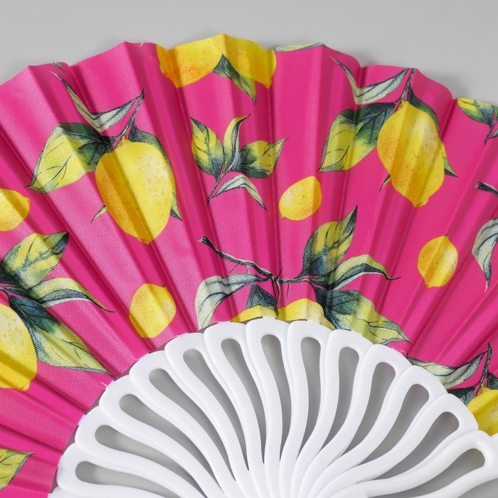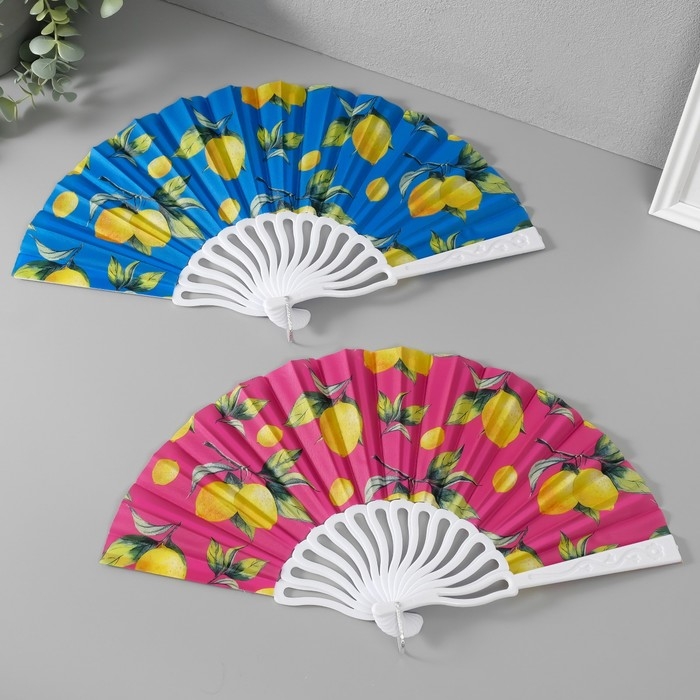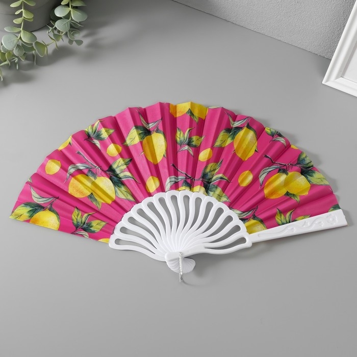 Веер пластик, текстиль "Россыпь лимонов" МИКС 23 см