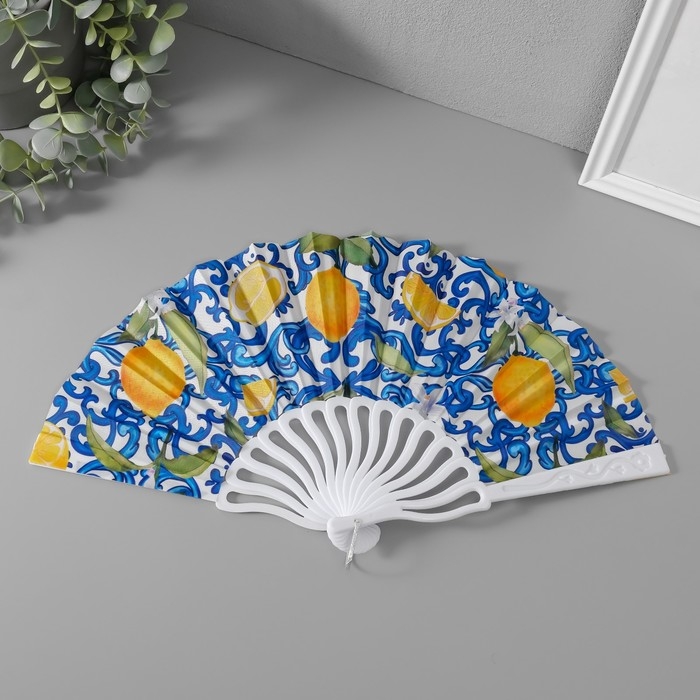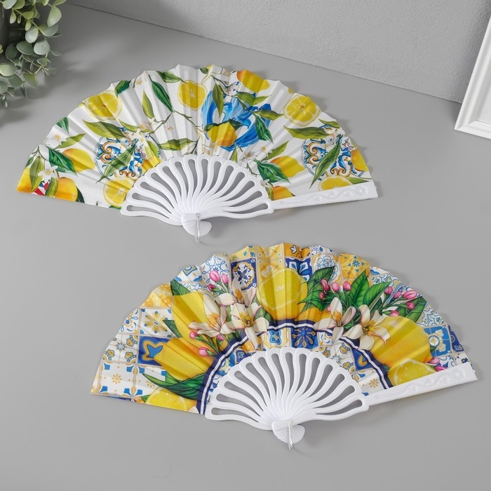 Веер пластик, текстиль "Сочные лимоны" МИКС 23 см