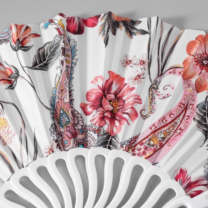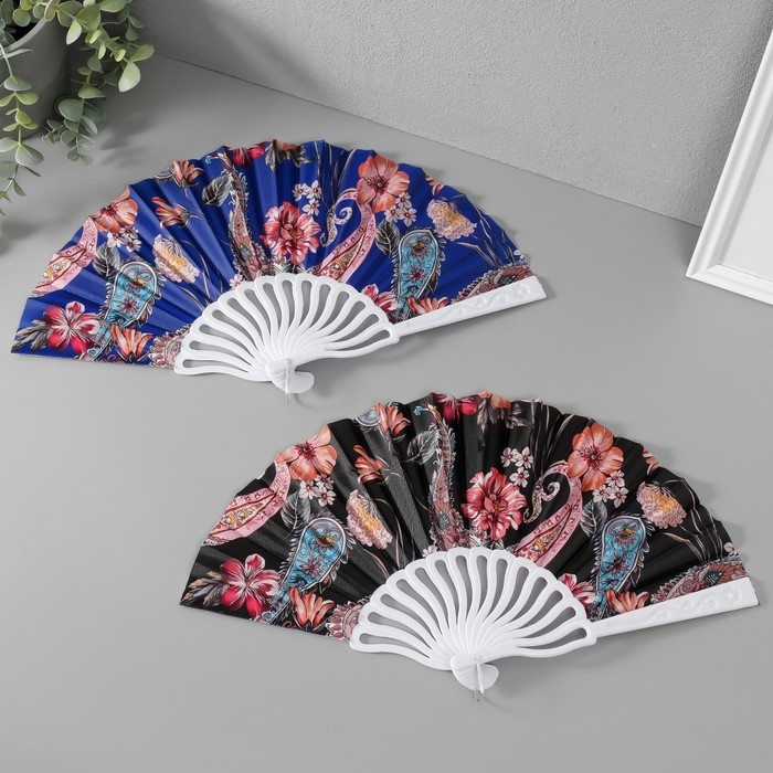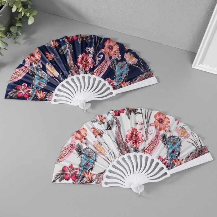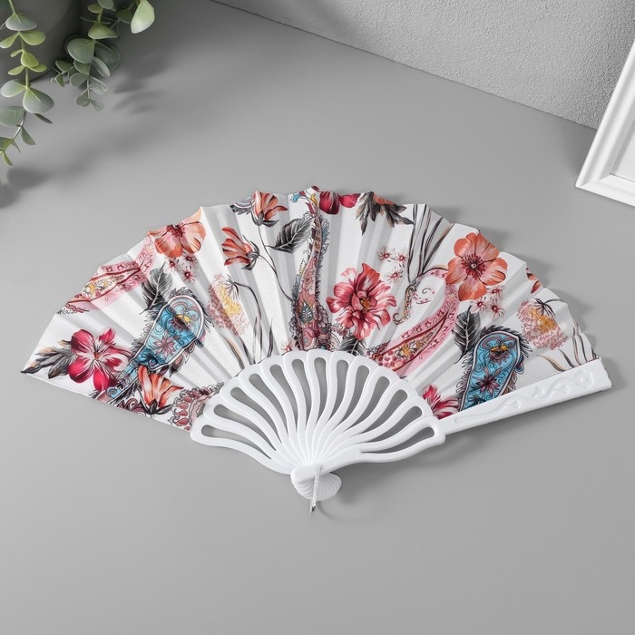 Веер пластик, текстиль "Перья и цветы" МИКС 23 см