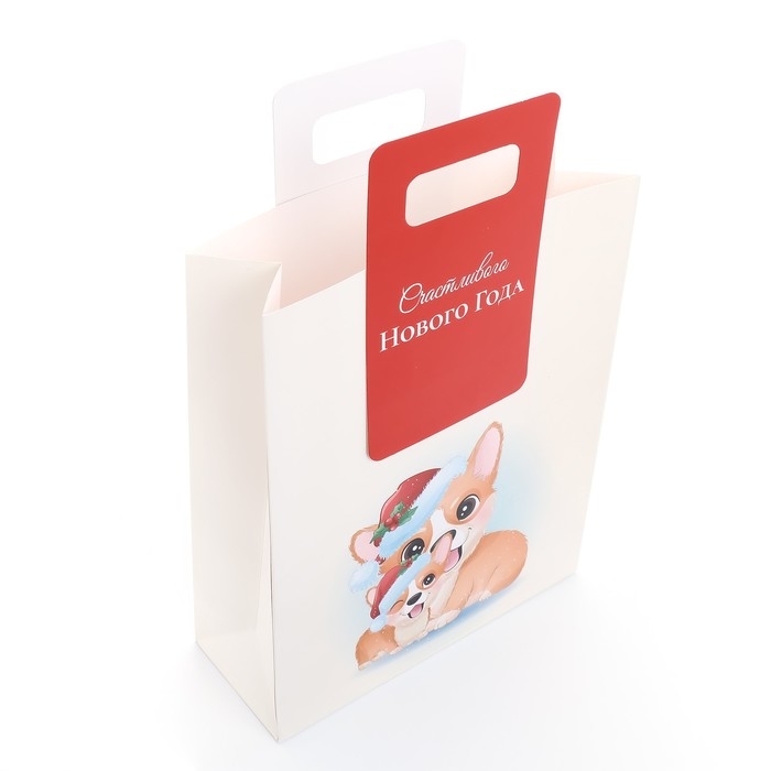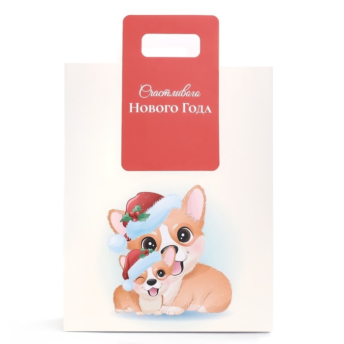 Новый год. Пакет подарочный с вырубной ручкой "Корги" 26 х 32 х 10 см.