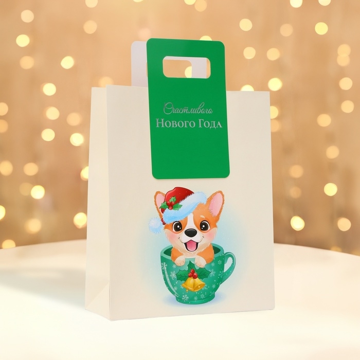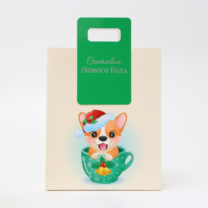 Новый год. Пакет подарочный с вырубной ручкой "Корги" 26 х 32 х 10 см.