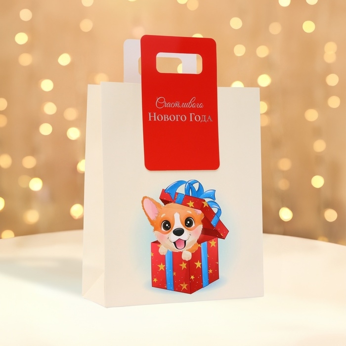 Подарочный пакет с вырубной ручкой, размером 18 х 23 х 9 см, с новогодним дизайном – это стильное и удобное решение для упаковки праздничных подарков.