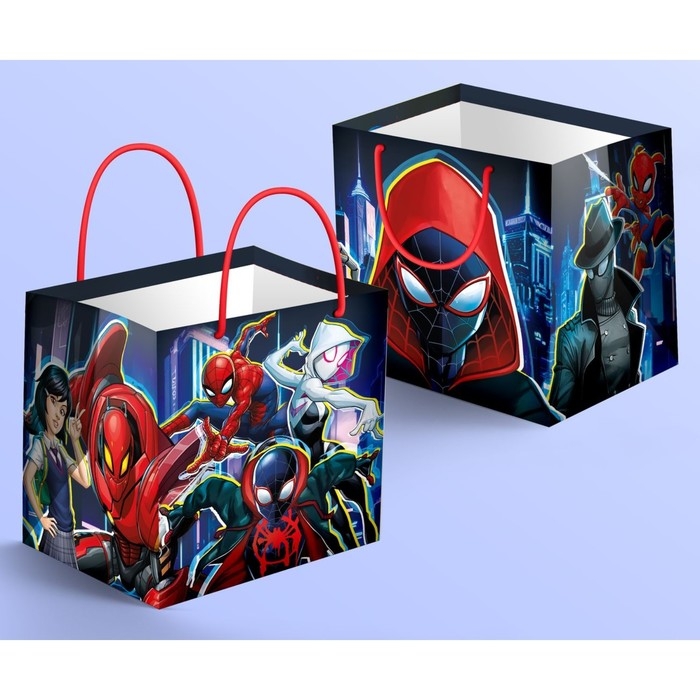 Пакет подарочный с широким дном, 30х30х30 см, Человек-паук