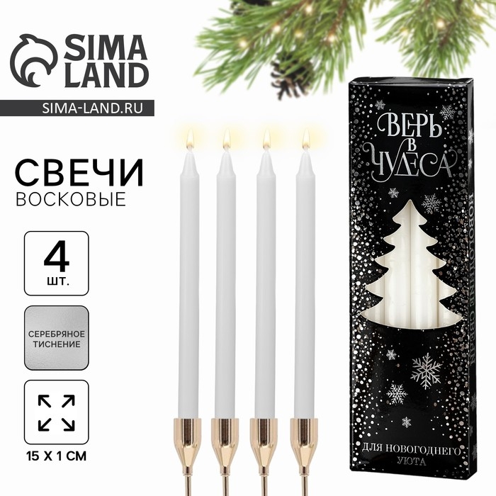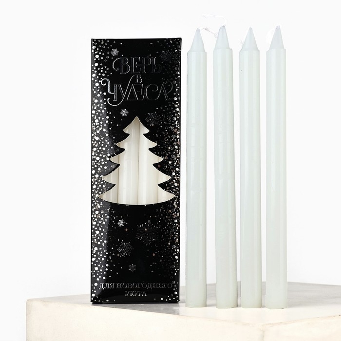 Набор новогодних восковых свечей «Новый год: Уютной зимы» 4 шт., белые, 10 х 15 х 3 см