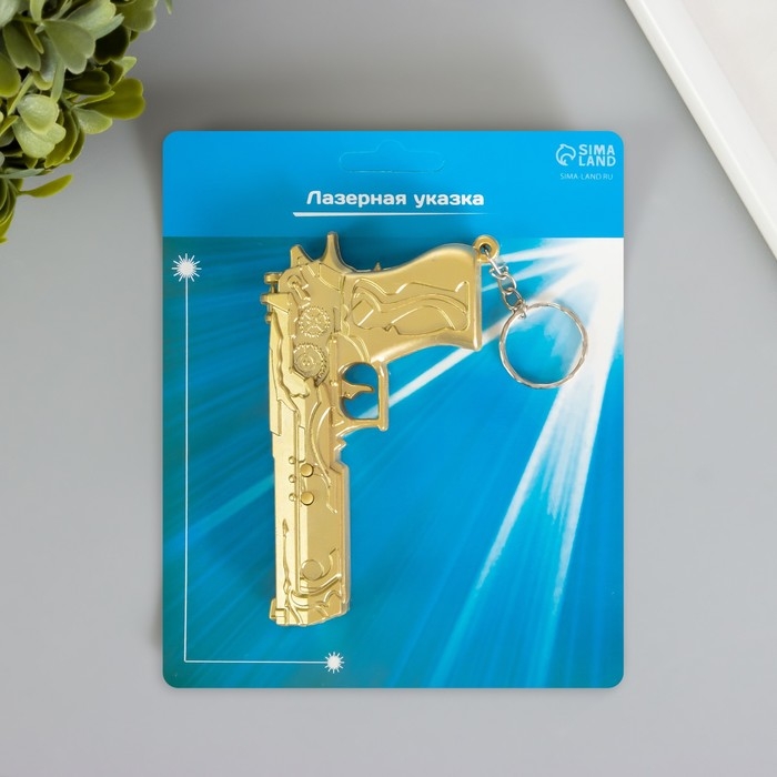 Указка лазерная 4 режима мигает,ультрафиолет,лазер LR44x3 шт "Пистолет" золот 5,2х9,7х1,5 см 10473