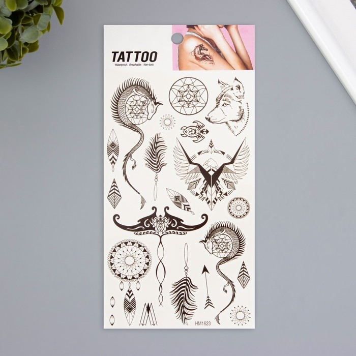 Татуировка на тело чёрная "Сила природы" 10х20,5 см