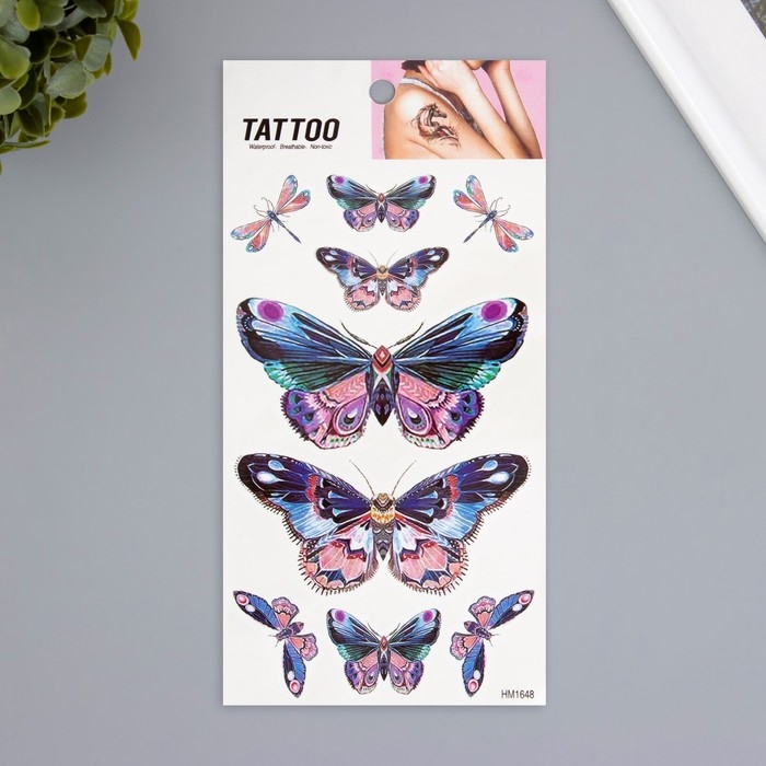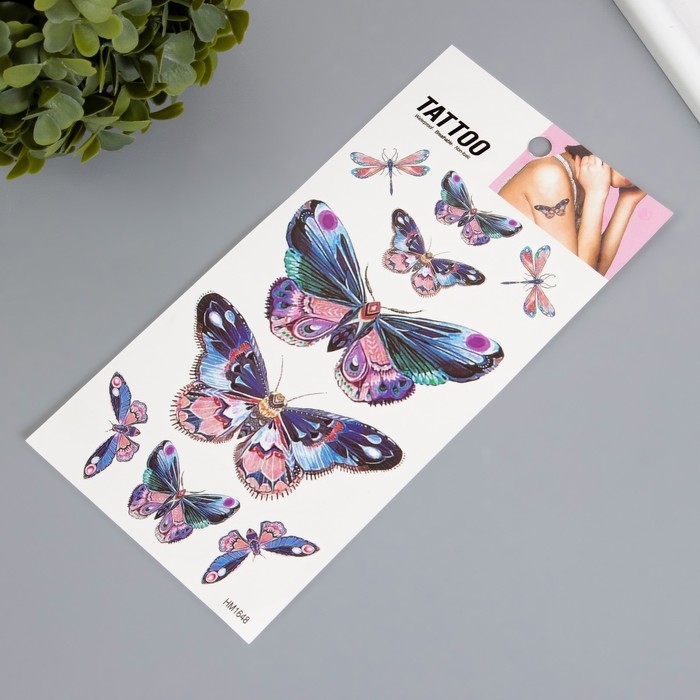 Татуировка на тело цветная "Бабочки розово-сиреневые" 10х20,5 см