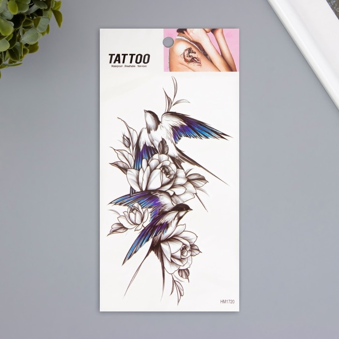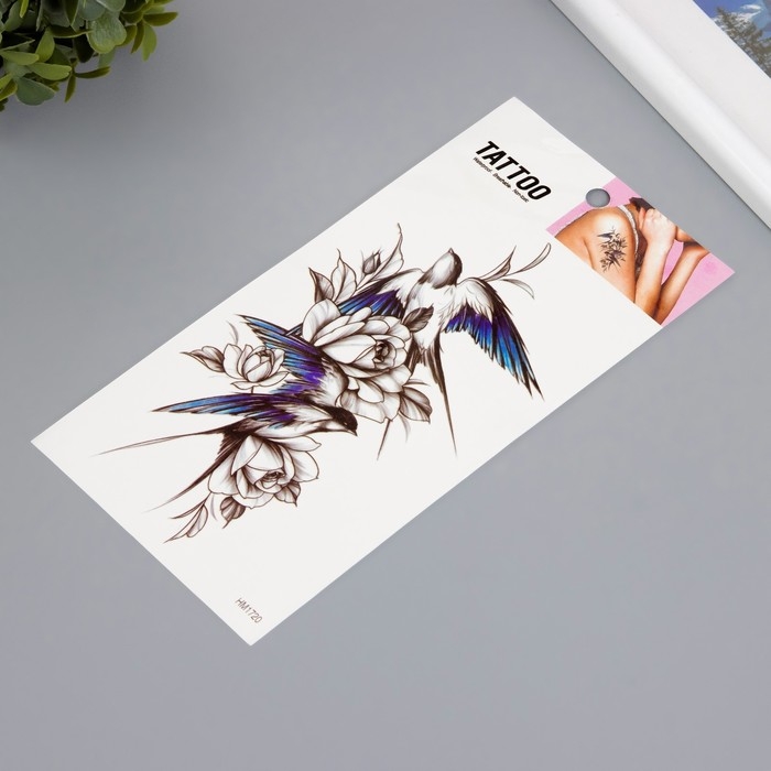 Татуировка на тело цветная "Ласточка с синими перьями" 10х20,5 см
