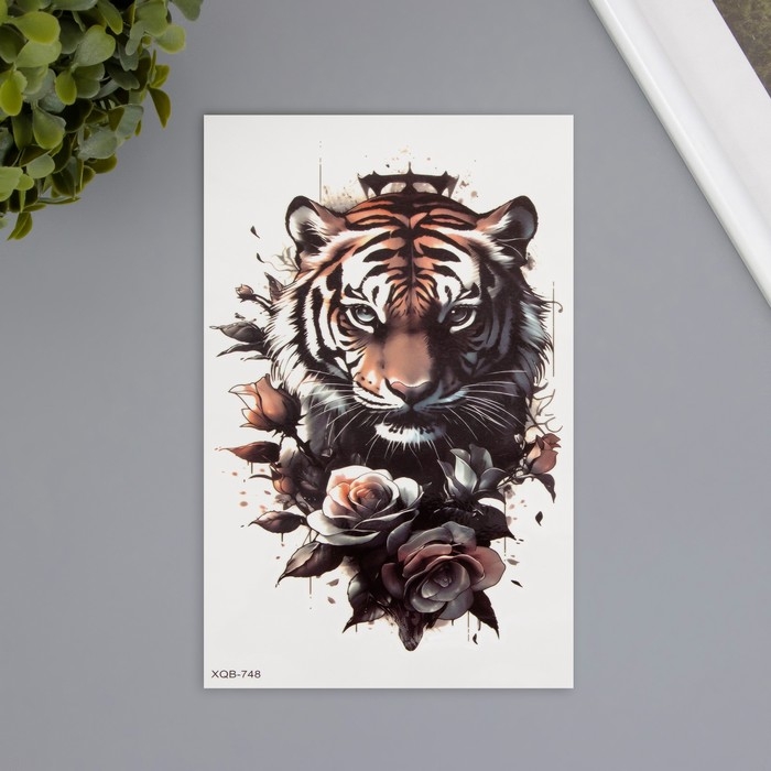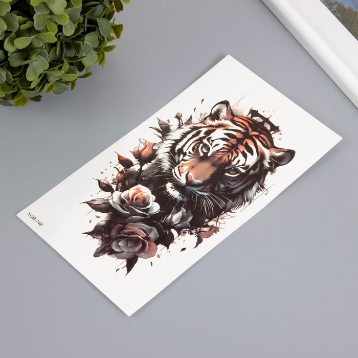 Татуировка на тело цветная "Тигр в розах" 11,4х21 см