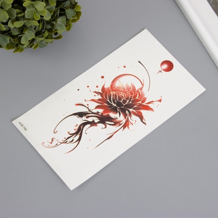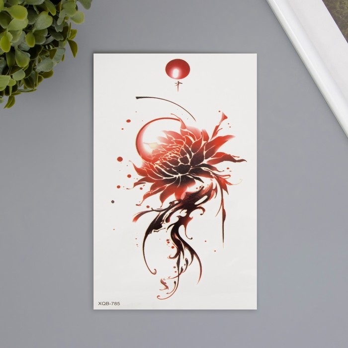 Татуировка на тело цветная "Цветок красными чернилами" 11,4х21 см