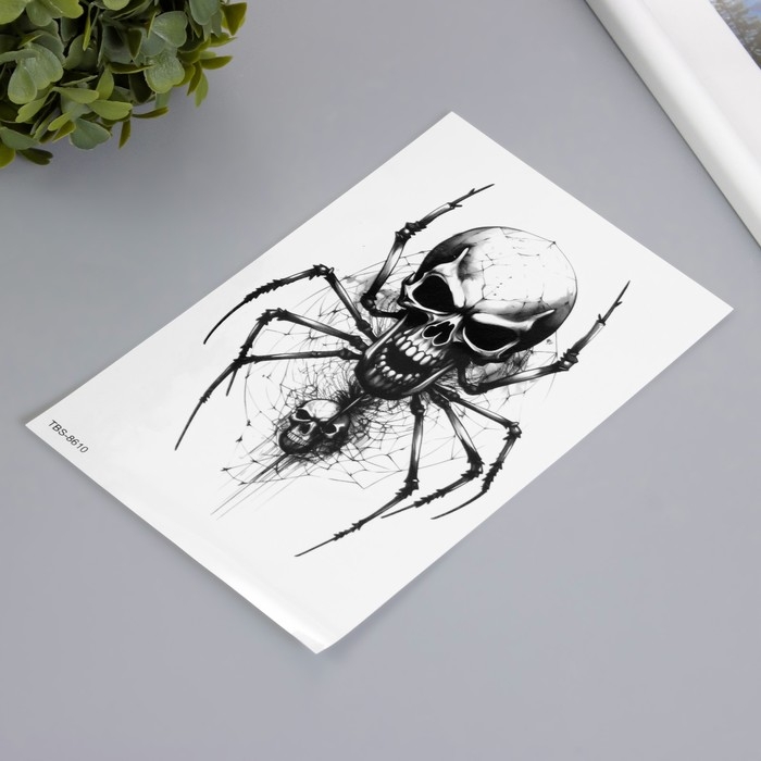 Татуировка на тело чёрная "Череп на паучьих лапах" 12х19 см