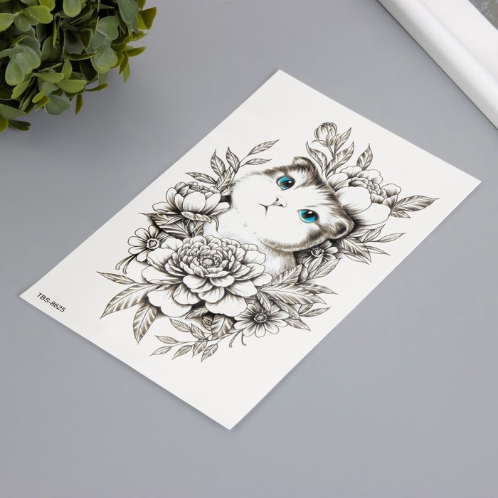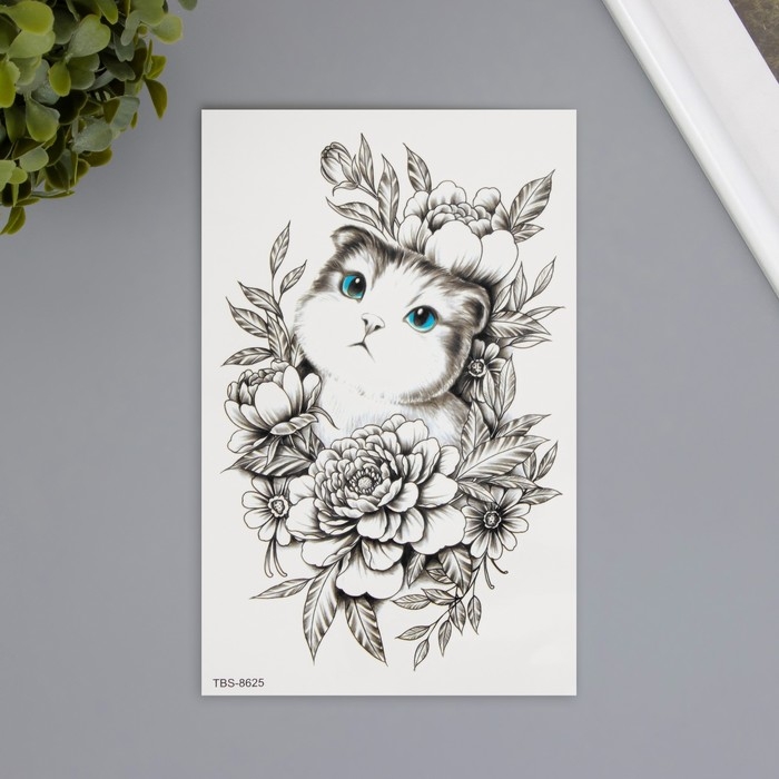 Татуировка на тело цветная "Вислоухий котик" 12х19 см