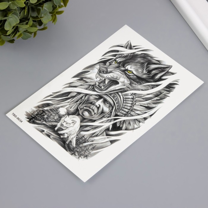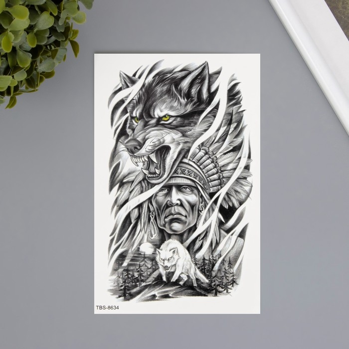 Татуировка на тело чёрная "Вождь. Сопротивление" 12х19 см