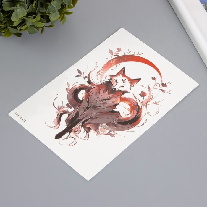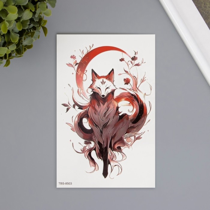 Татуировка на тело цветная "Лунная лисица" 12х19 см