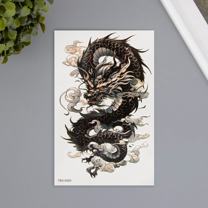 Татуировка на тело цветная "Облачный чёрный дракон" 12х19 см