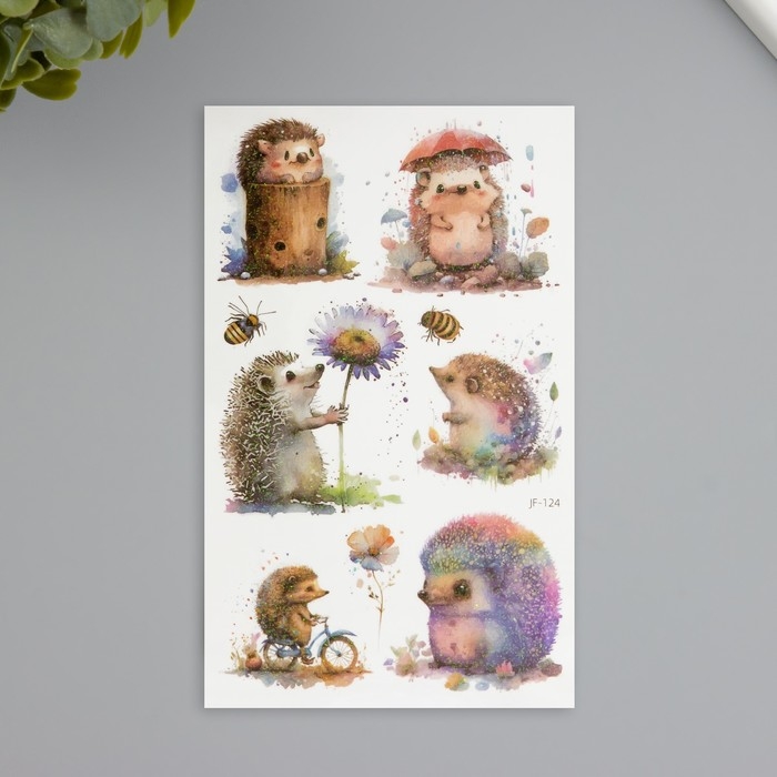 Татуировка на тело фосфорные с блёстками "Ёжик" 7,5х12 см