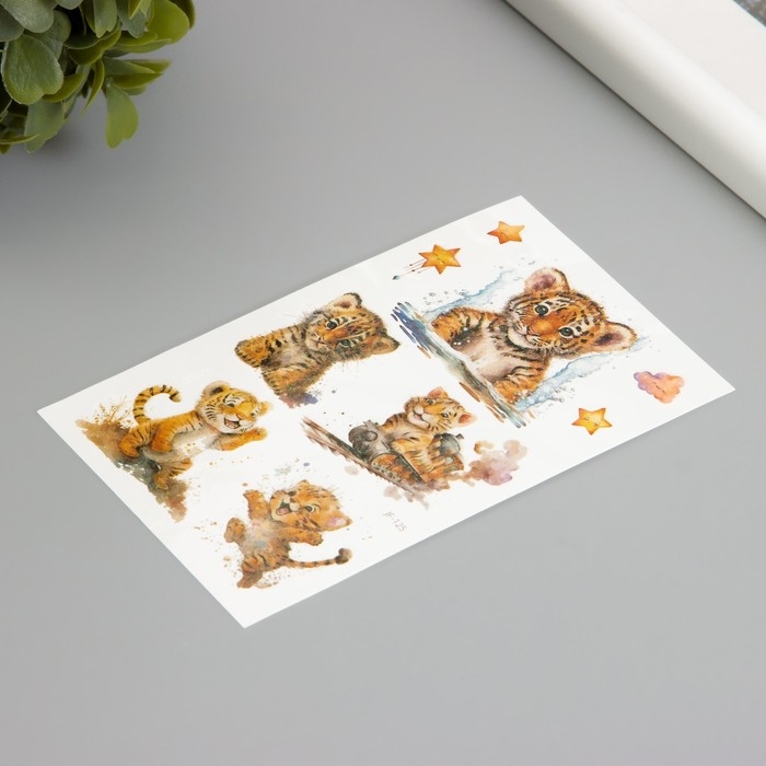 Татуировка на тело фосфорные с блёстками "Тигрёнок" 7,5х12 см
