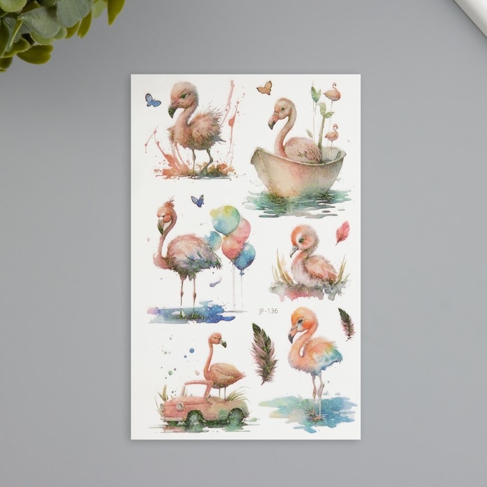 Татуировка на тело фосфорные с блёстками "Фламинго" 7,5х12 см