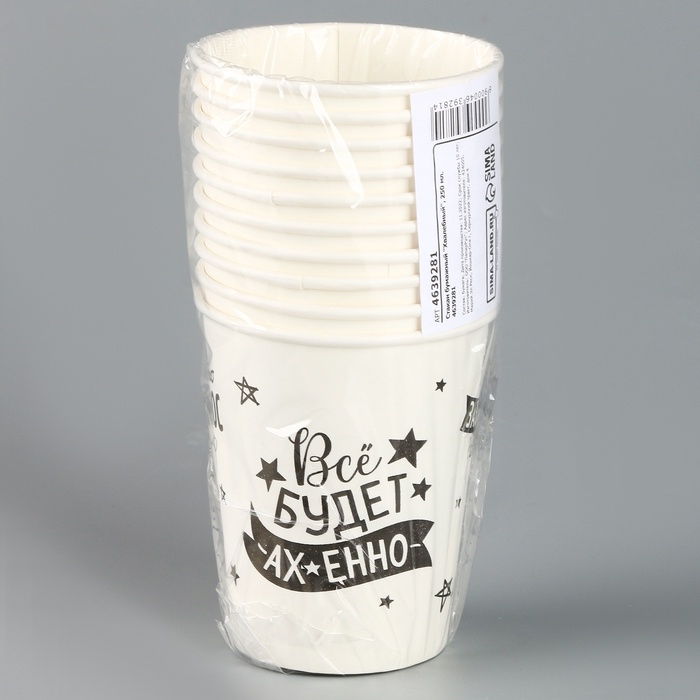 Стакан одноразовый бумажный "Хвалебный", 250 мл, набор 6 шт.