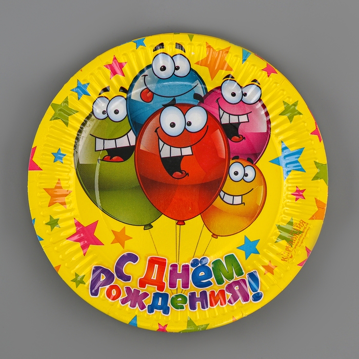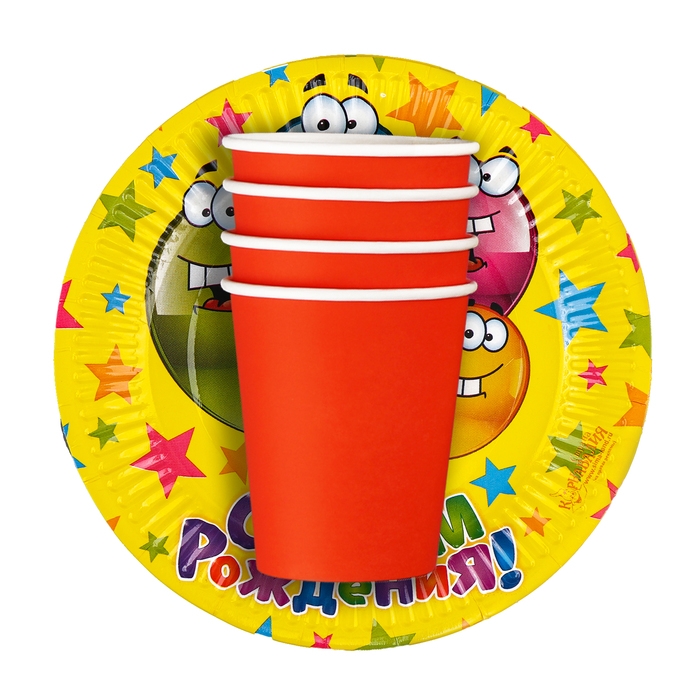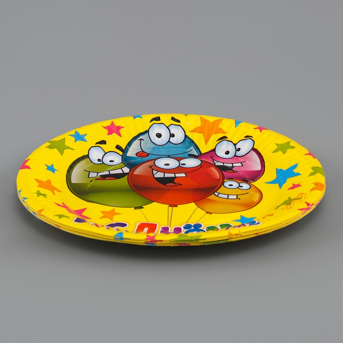 Набор бумажной посуды "С днём рождения" веселые шарики, 6 тарелок,6 стаканов