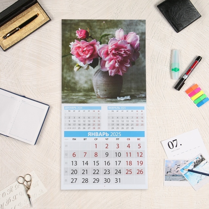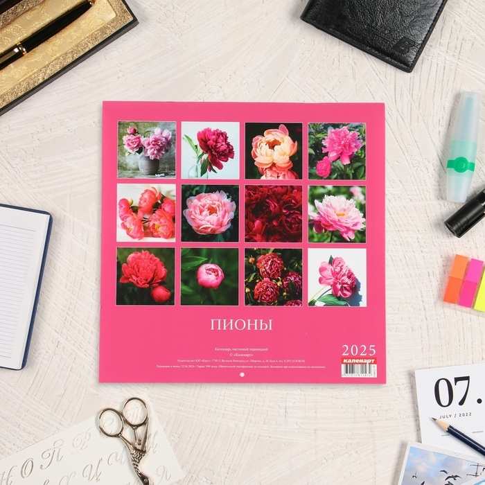 Календарь перекидной на скрепке "Пионы" 2025 год, 12 листов, 29х29 см