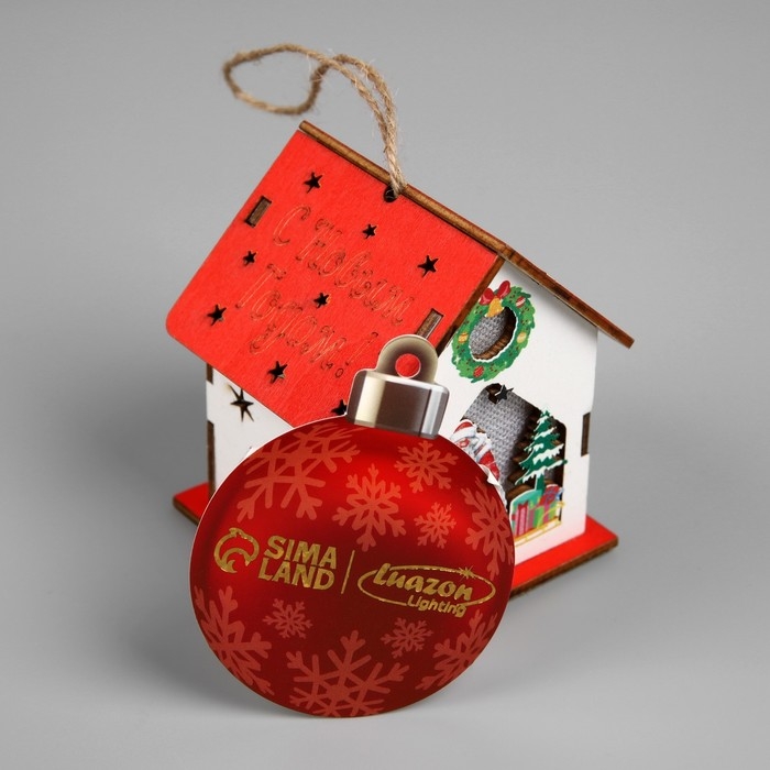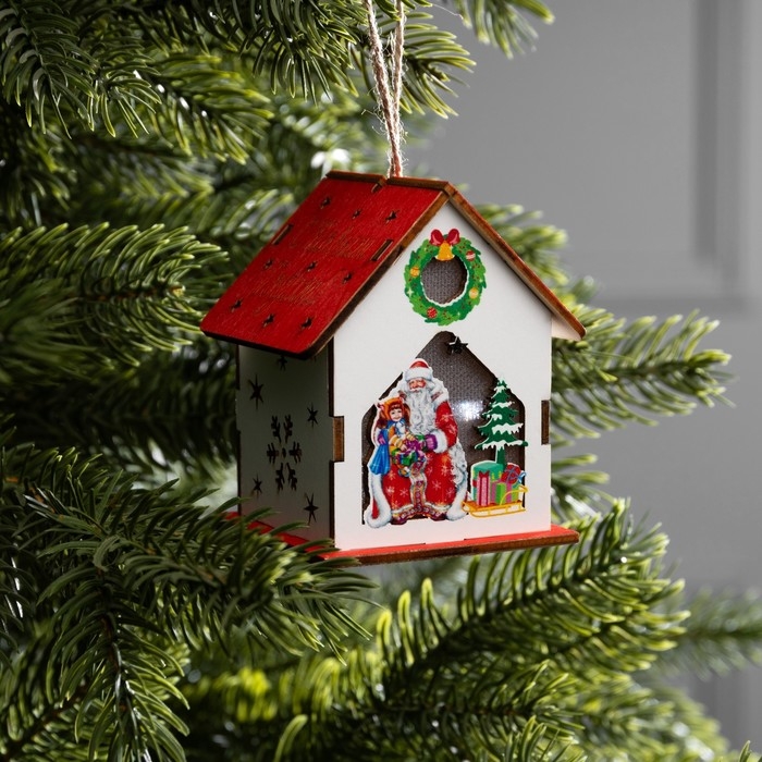 Подвеска световая "Дом Деда Мороза", 7х6х8 см, 1 LED, AG10x3 (в компл.), свечение тёплое белое