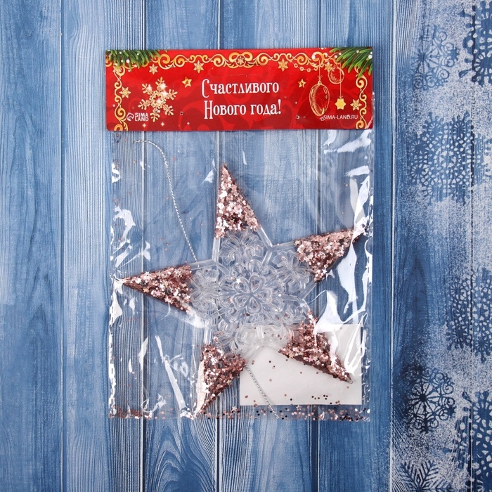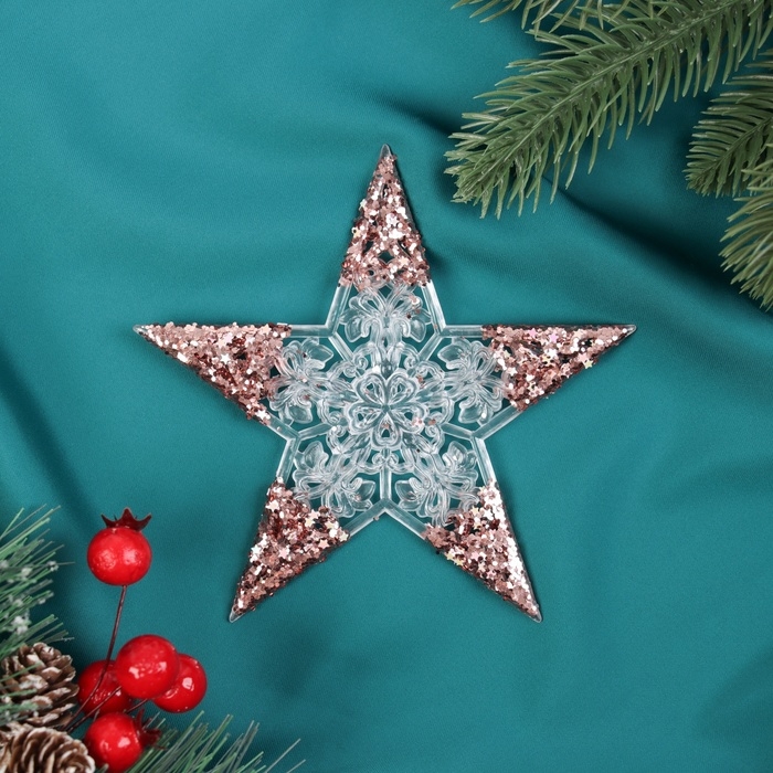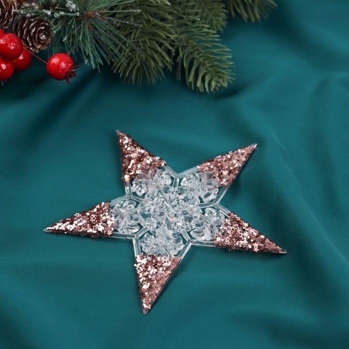 Украшение ёлочное "Звезда сияние кончики блеск" 12х12 см, прозрачно-розовый
