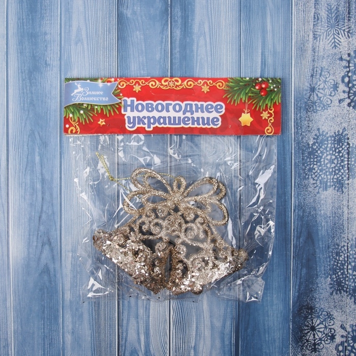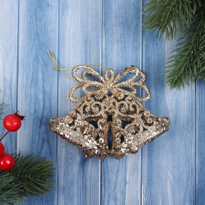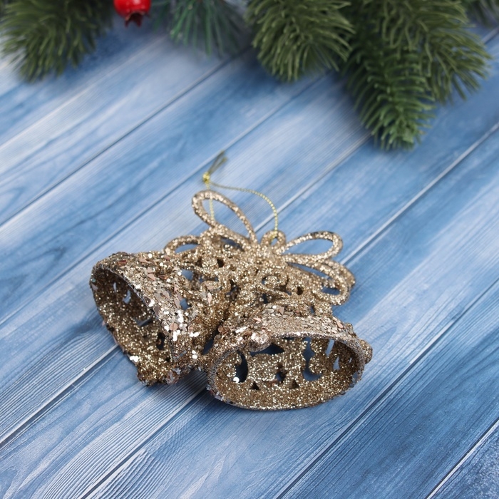 Украшение ёлочное "Колокольчики с бантиком блеск" 8х10 см, золото
