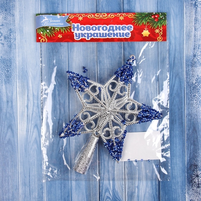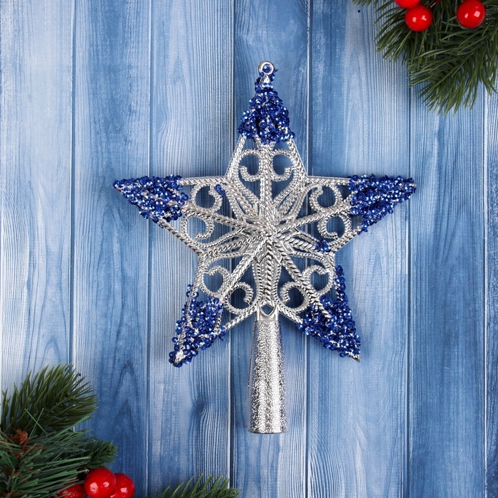 Наконечник "Звезда кружевная" 17х14 см, серебристо-синий