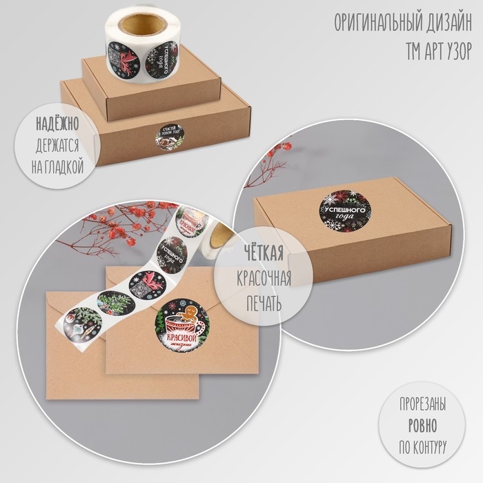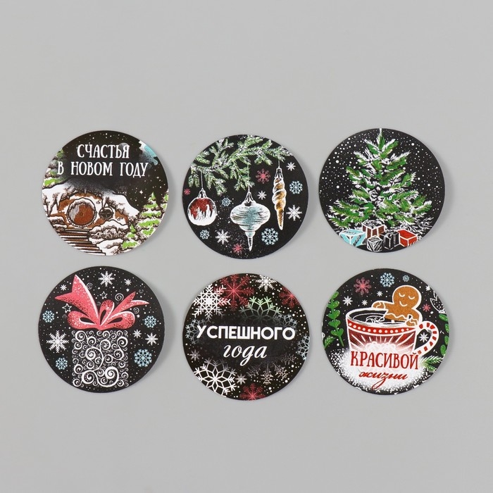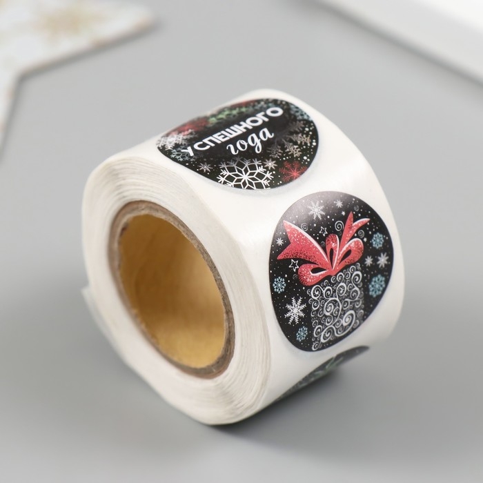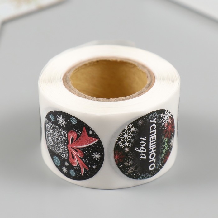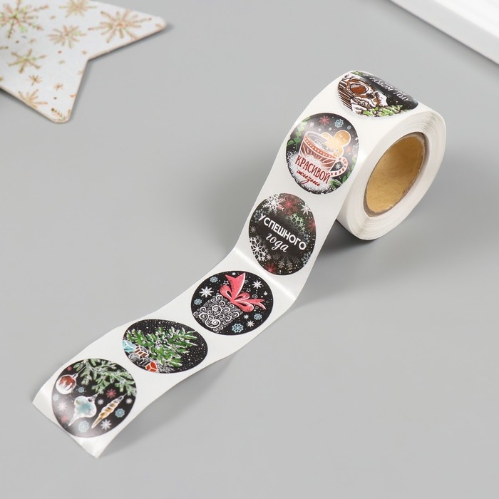 Наклейка бумага "Новогодние рисунки на чёрном" d=2,5 см 252 шт в рулоне