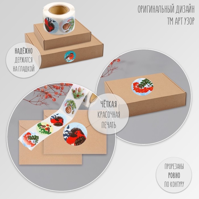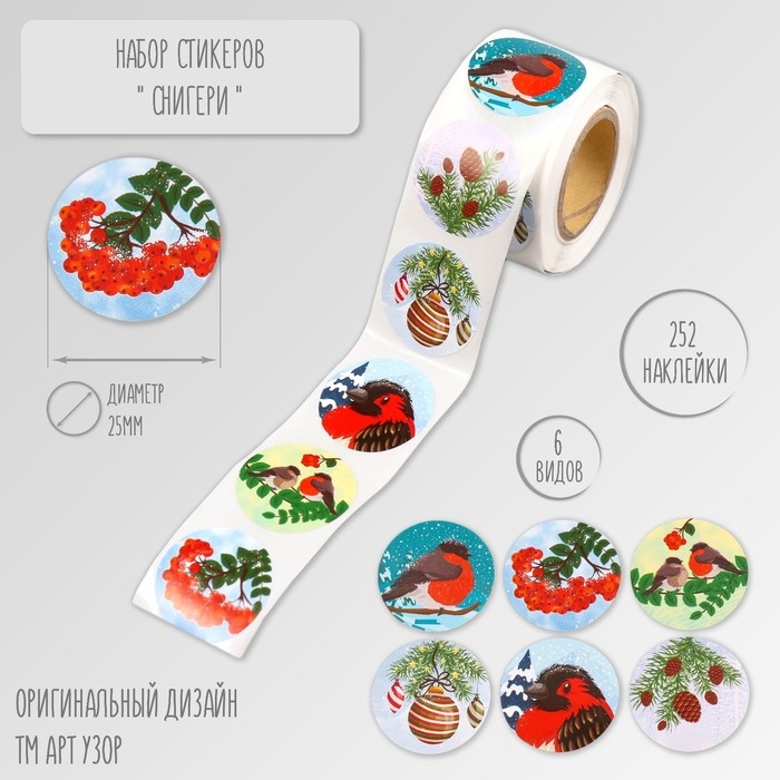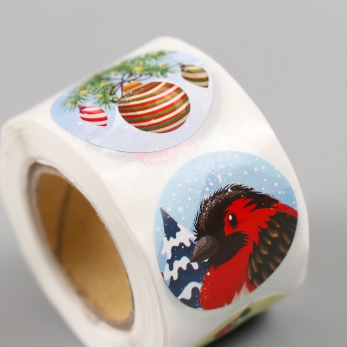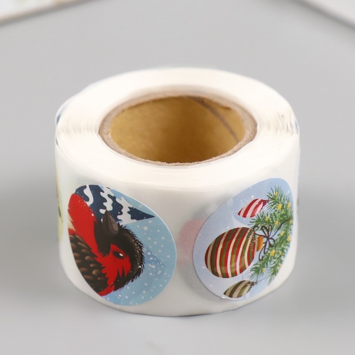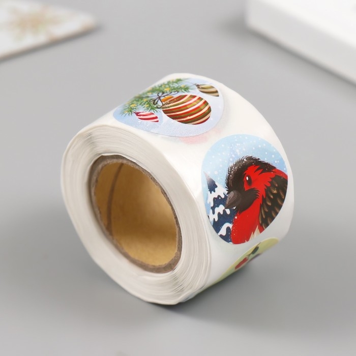 Наклейка бумага "Снегири" d=2,5 см 252 шт в рулоне