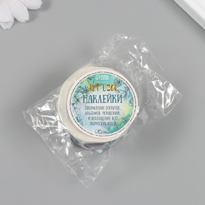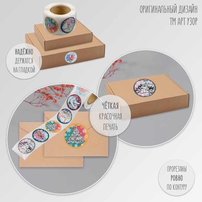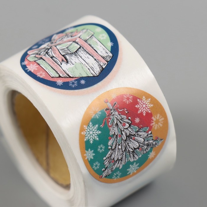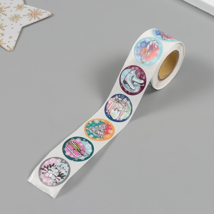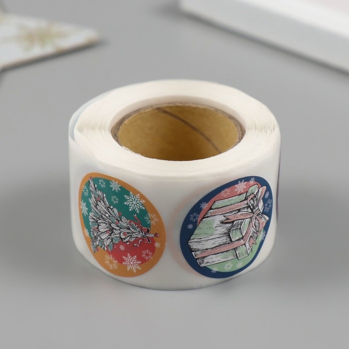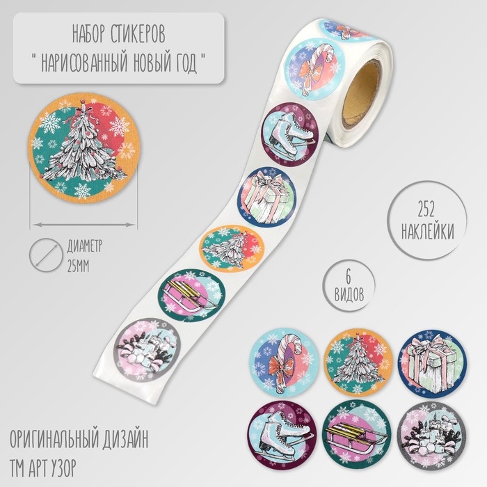 Наклейка бумага "Нарисованный Новый год" d=2,5 см 252 шт в рулоне
