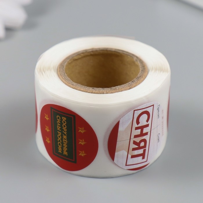 Наклейка бумага "Военный билет" d=2,5 см 252 шт в рулоне