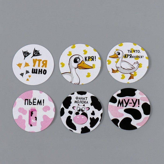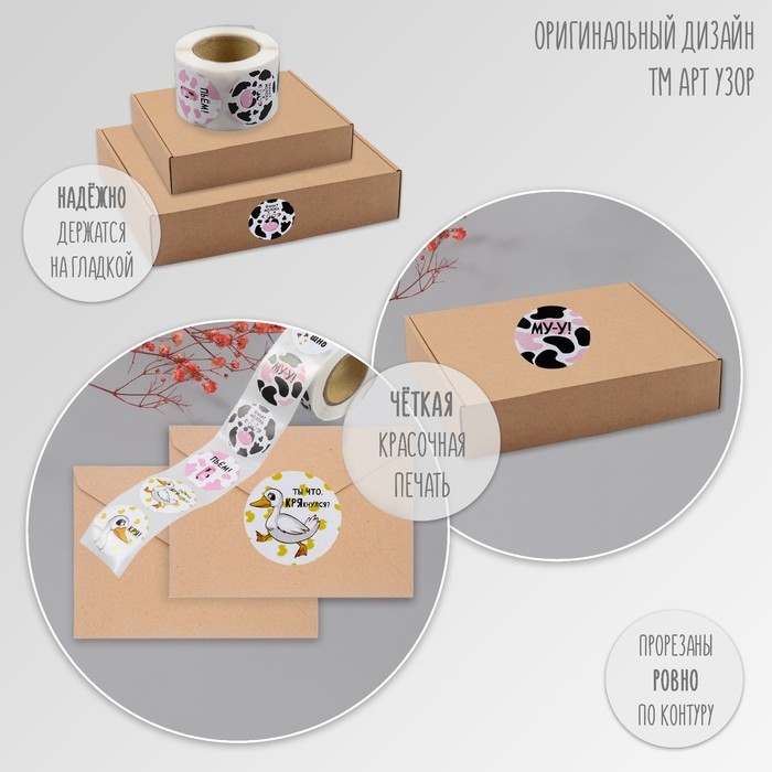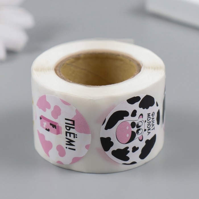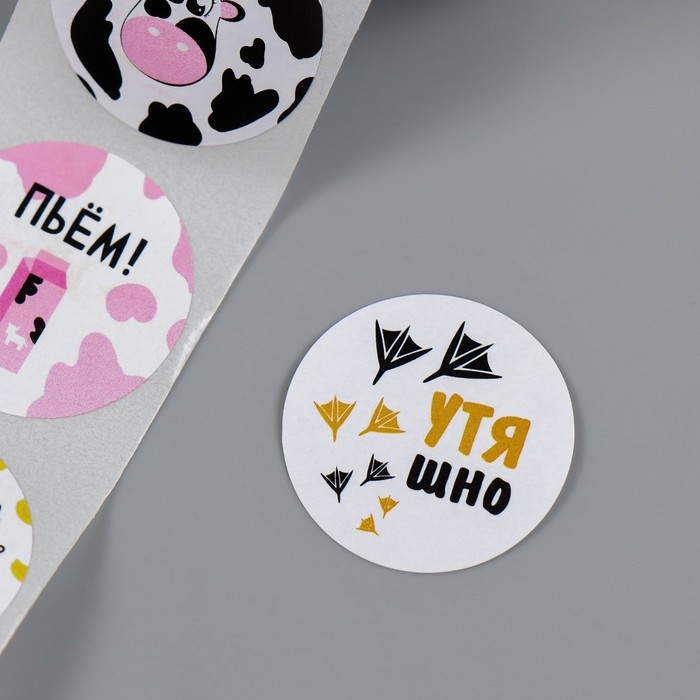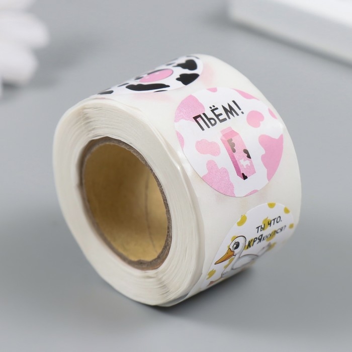 Наклейка бумага "Уточка и коровка" d=2,5 см 252 шт в рулоне