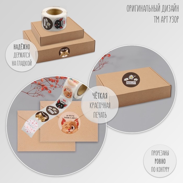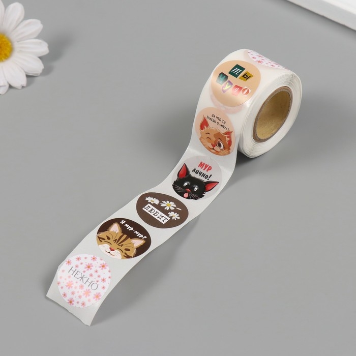 Наклейка бумага "Котятки" d=2,5 см 252 шт в рулоне