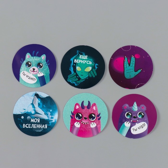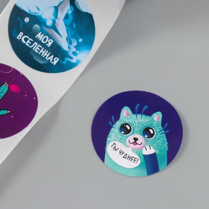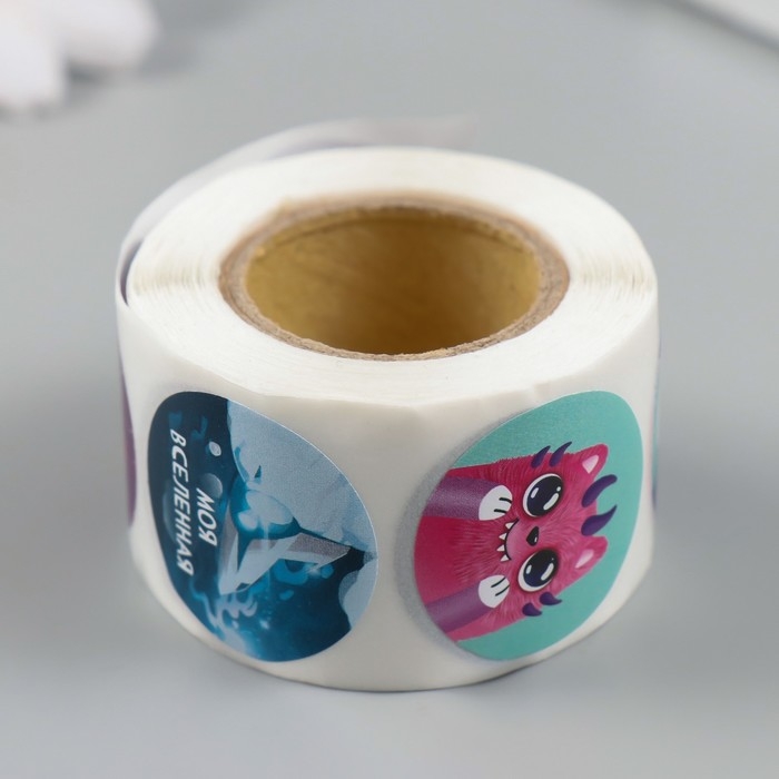 Наклейка бумага "Инопланетные" d=2,5 см 252 шт в рулоне