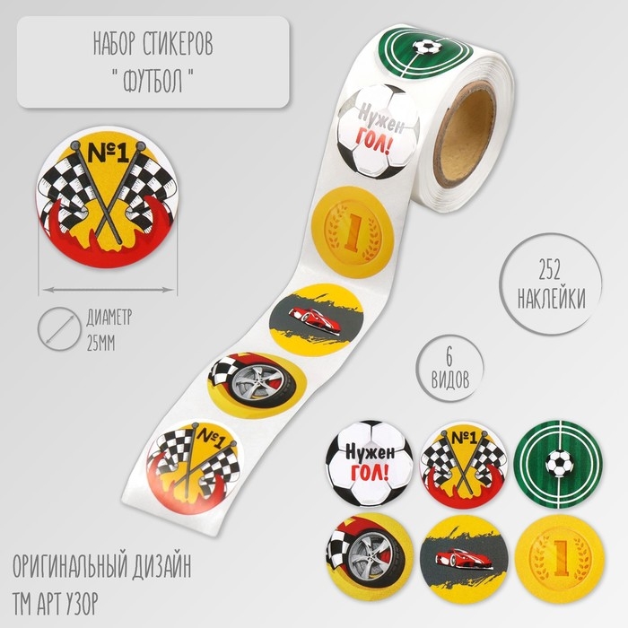 Наклейка бумага "Футбол" d=2,5 см 252 шт в рулоне
